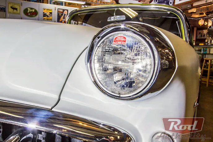The hood of the Buick Special has been shaved and a peak added. This gave the car the look Kevin wanted and is pretty unique. The trunk lid was also shaved to keep the streamlined appearance. Even the door handles got some love. As mentioned previously, Kevin did the paint himself. It was the first time he ever sprayed a car, so it was definitely a learning experience.