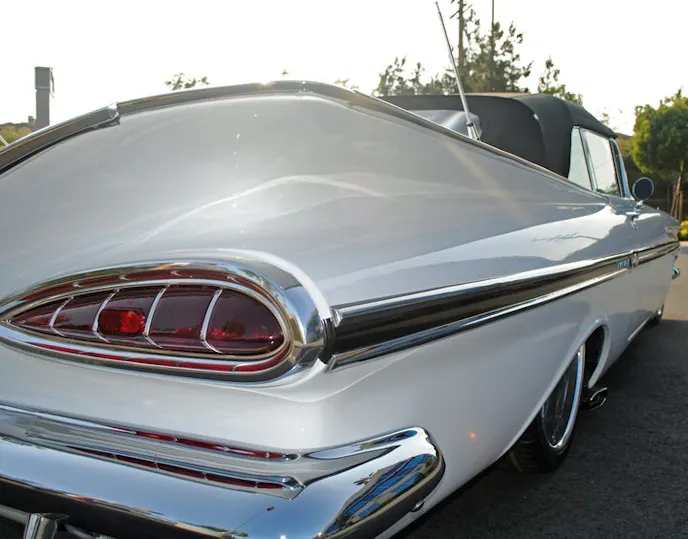 Introduced in 1957 as a 1958 model, the Chevy Impala immediately found sales success as Chevy’s top-end automobile. It came with all the fins, chrome, bells, and whistles you’d expect from a late 50s Chevrolet. Yet just one year after its introduction, the Impala was dramatically restyled as part of GM’s economizing its lineup.