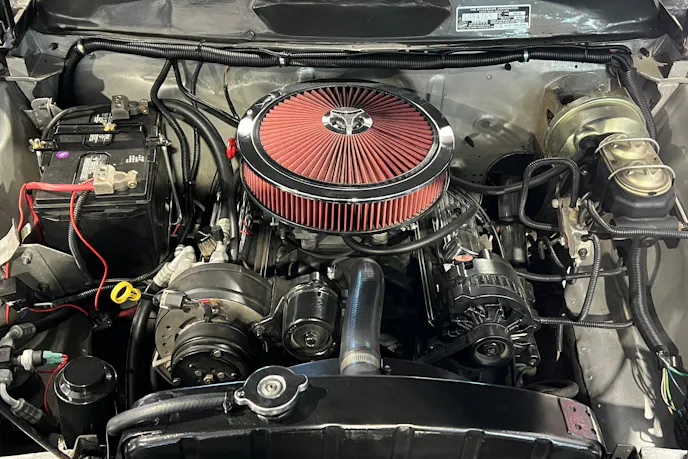 Most hot rodders would have added a worked small-block of some sort to motivate the Champion, but the previous owner went an entirely different route. The 4.3 looks for all the world like a small-block Chevy and that’s what we thought it was when we first saw it. Because of its light weight, the Stude does not need a ton of power to pass modern traffic. The 4.3 is now carbureted with an Edelbrock carb and intake combo and an aftermarket cam of unknown origin, so we’d guesstimate horsepower to be in the 275-300 range. It definitely sounds the part through the custom exhaust.