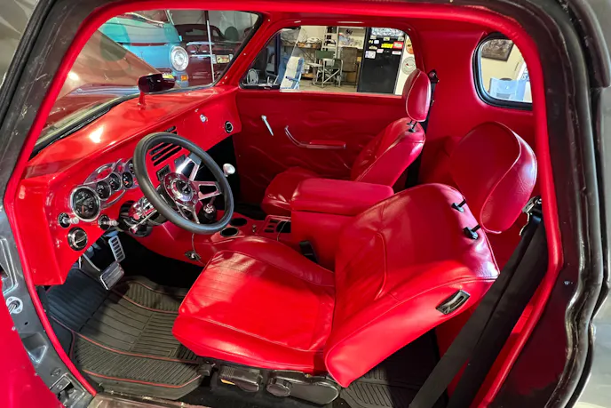 Yes, this ’51 Studebaker Champion is a complete fake-out. It was born without rear seating, but now there’s room beneath the turreted roof for more passengers. The trunk is customized and it has a modern overdrive transmission, too.