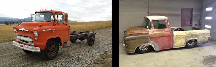 For Darren Hoffman, the Tug Boat is a dream that came to life. What was once a 1955 snub nose cab over 2-ton workhorse has now been transformed into a unique and radical ride that he is immensely proud to cruise around British Columbia. The project was an enormous amount of effort to complete and took thousands of hours and assistance from many people.