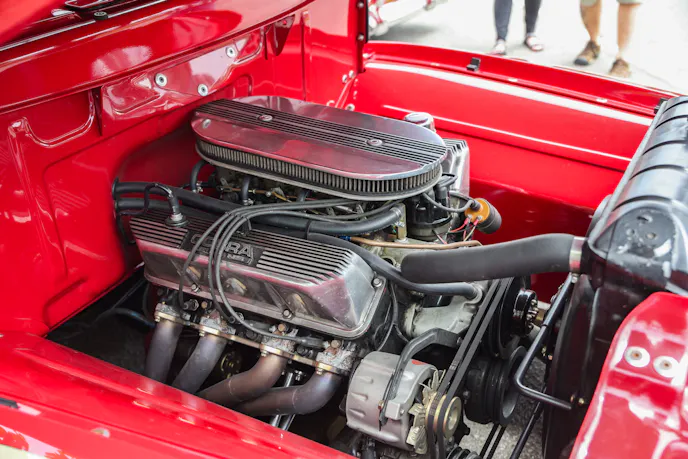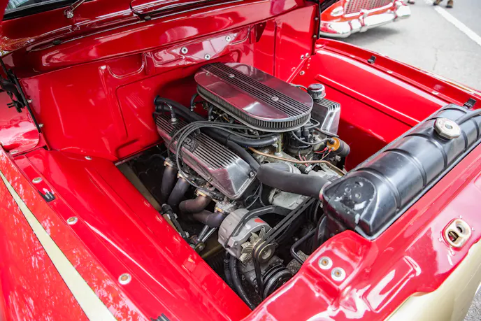 What’s Mike’s favorite thing about the build? “Probably the chassis and the suspension work and the engine — the drivetrain probably more than anything.”The traditional theme carries over into the interior, where the highlight is a pleated 1960’s-style black leather bench seat.