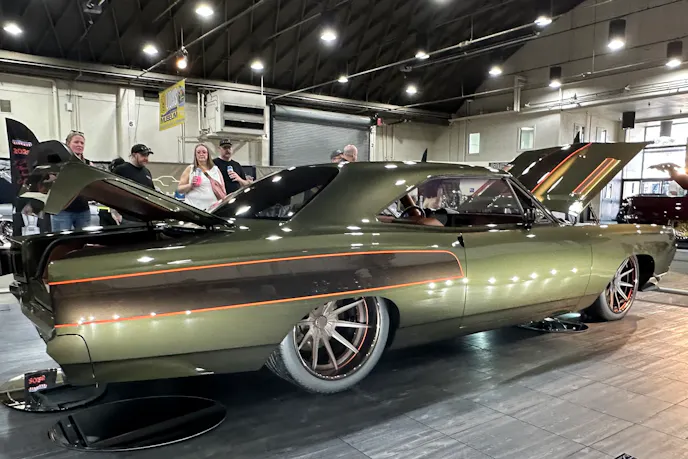 The Lee’s survivor Road Runner is a date-code-correct, real-deal piece of history, wearing a period-original Frost Green exterior color. And although its OG paint scheme was inspo for their Road Runner revamp, there is no mistaking the original for its motor-swapped modern muscle counterpart.