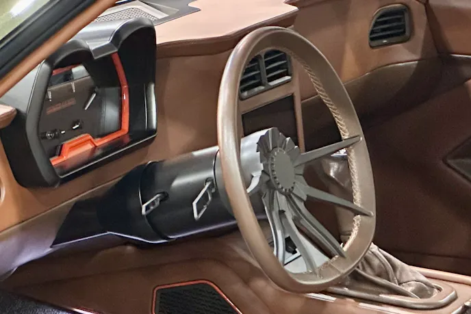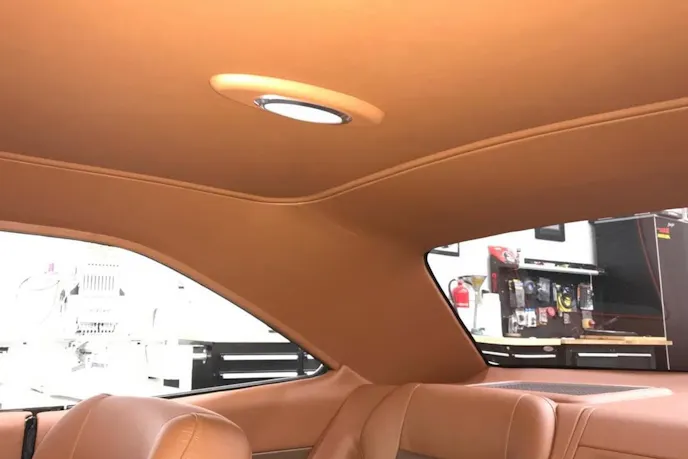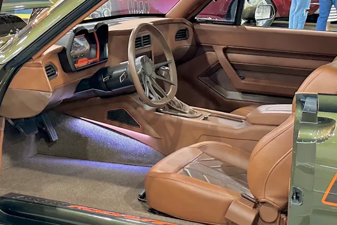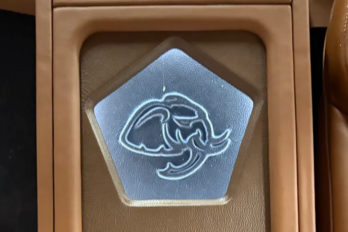 The warm caramel shades inside give a vibe that mixes luxury and still feels sporty. Gluck completed the work, including an Easter egg or two, within a rocket-quick, three-month time frame.