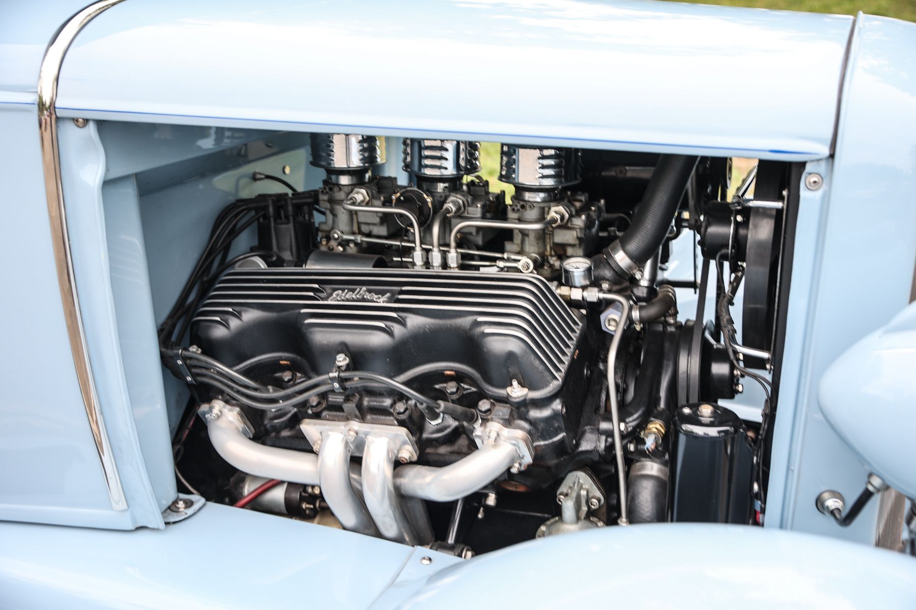 Rick didn’t take the easy route with his powertrain choice. Sitting under the hood is a 1960 Chevrolet 348ci big-block engine. It’s not what most people expect to see when they lean in for a closer look. This big-block powerplant turns heads for all the right reasons. The 348ci big-block was a short-lived but memorable part of Chevrolet’s performance history, and seeing it nestled between the rails of a Ford hot rod brings out equal parts curiosity and appreciation.
