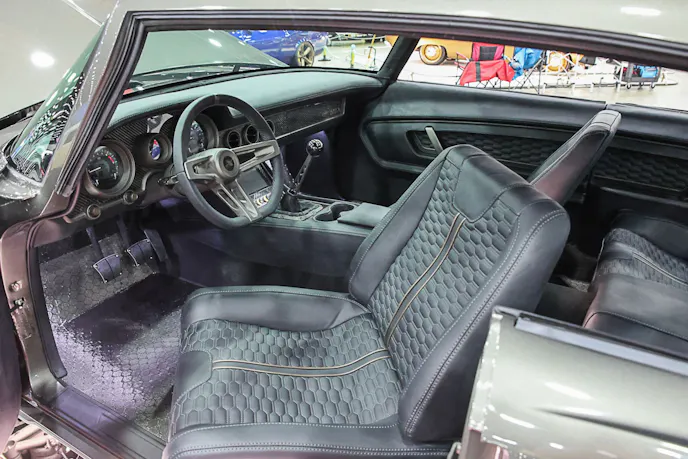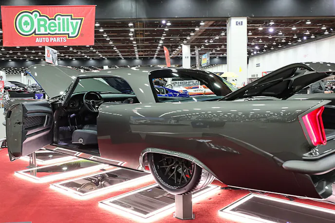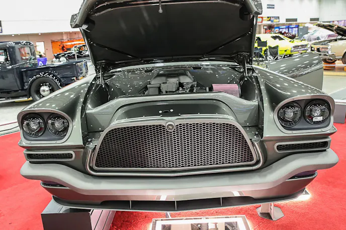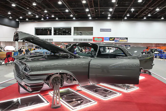 The car was purchased sight unseen off eBay and shipped from Maryland to Phoenix. It ran and drove, but needed plenty of work. Final assembly came down to the wire; just two days before Autorama, the hood was still being adjusted. The car had to leave by 5 p.m. to make the 30-hour haul in time for setup. They made it.
