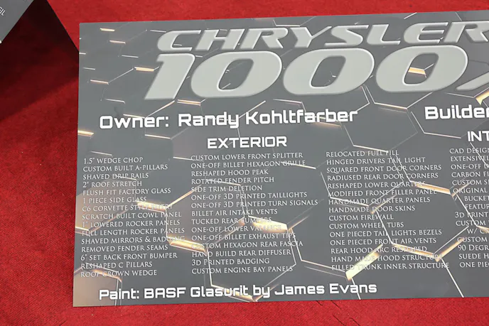 In a sea of Camaros, Mustangs, and Challengers, this Chrysler 1000X stands out for its rarity and styling alone. The team took what was once a stately cruiser and gave it a new role on the street. It’s long, it’s low, and it’s got the horsepower to back up its presence.
