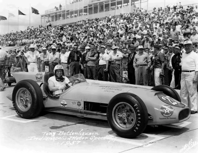 Tony Bettenhausen in the record setting 1957 Kurtis/Novi roadster. Photo from {link=https://scaleavenue.myfastforum.org/Name_this_Indy_500_driver_about2759.html}scaleavenue.myfastforum.org{/link}