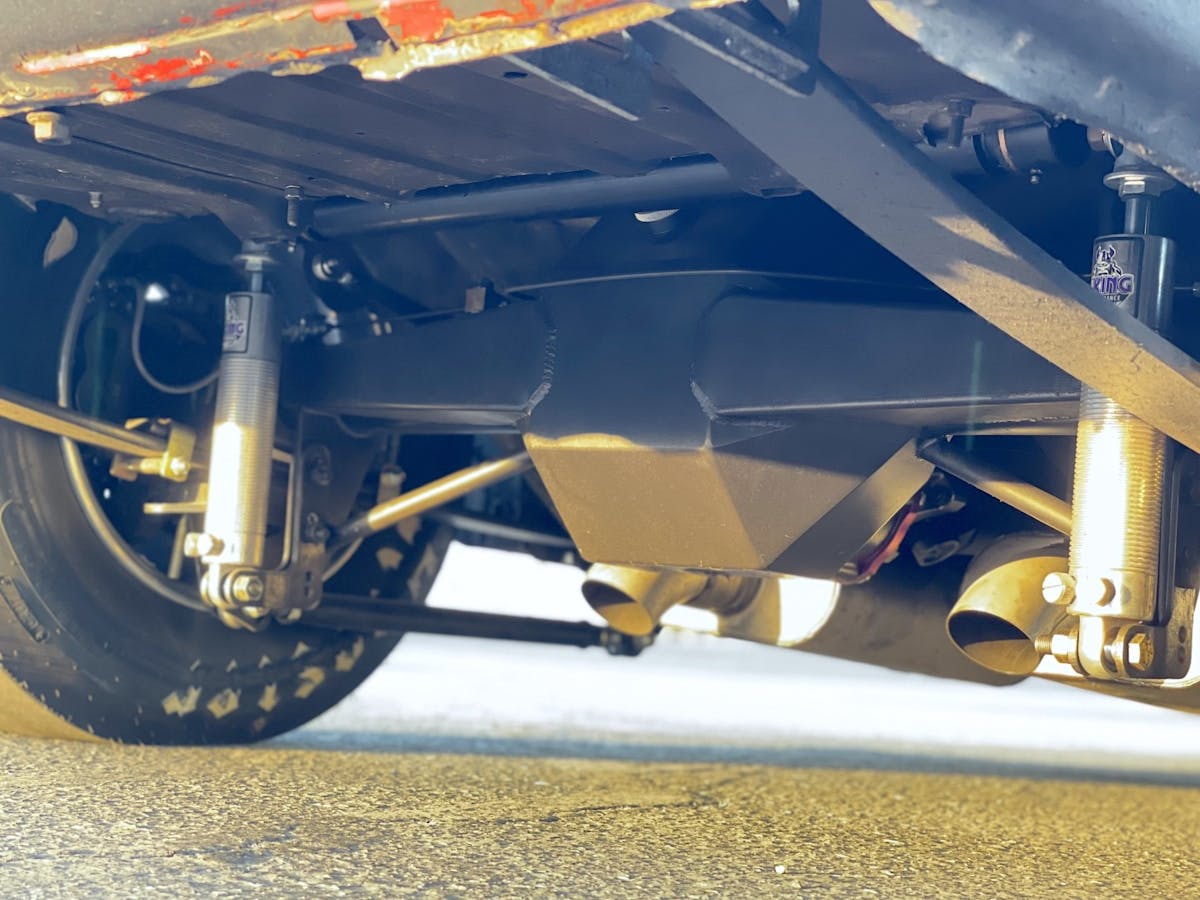 As we interviewed Josh, we pointed out how his Ford engine makes pretty good power, but he hasn’t modified it very much , so we asked him to break down the performance modifications that he has made. “The engine, performance-wise, has a ported Boss intake manifold, a ram air scoop, Kooks two-inch headers, no cats, and it runs on E85. That’s pretty much it for performance mods. It does have oil pump gears and billet timing chain guides for safety, but that’s because I’ll go 8k rpm on the two-step. All told, it makes 474hp to the tire.”