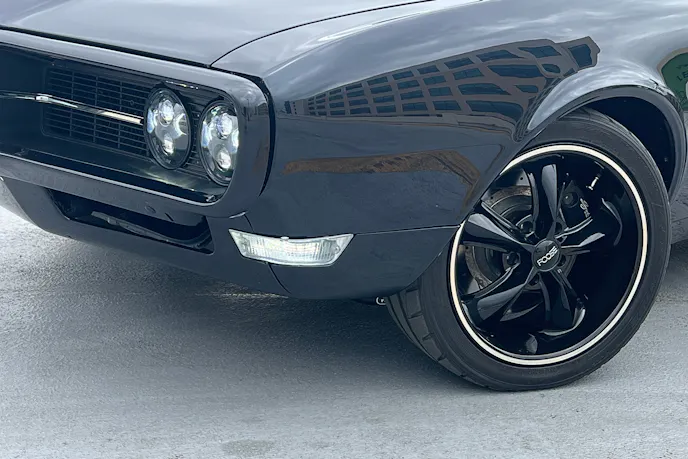 Perhaps the most unusual alteration is the headlights, which are Harley-Davidson parts. The LED front blinkers were built by Hargrove. The LED taillights were made by Hargrove since at the time of the build, no aftermarket LEDs were offered for the early Firebirds.