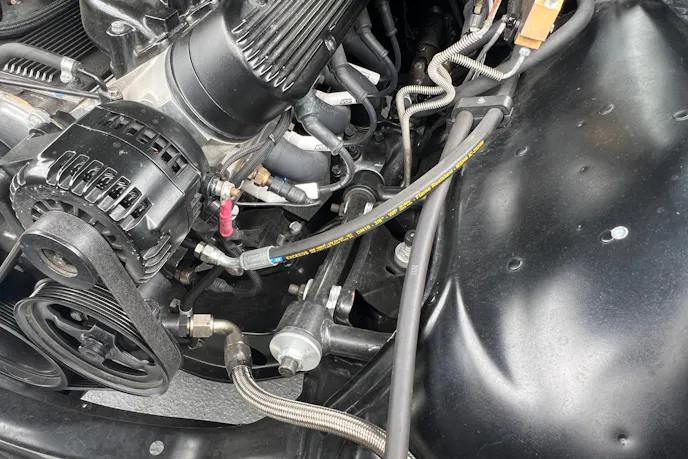 The engine in this F-body is a 450-horsepower 6.0-liter Chevrolet Performance crate mill. The 364 was enhanced by a Texas Speed cam, and now makes 525 horsepower with mid-length headers, Hooker Blackheart mufflers, a Holley single-plane intake, and MSD Atomic 2 fuel-injection setup.