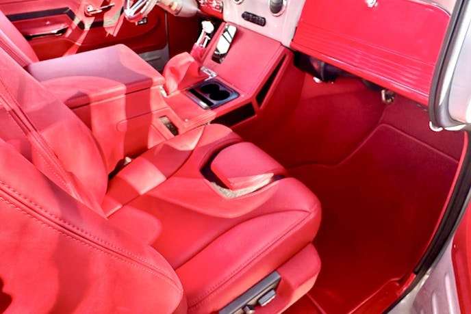 Customs handled the upholstery. The mix of factory-inspired lines with updated tech creates an interior that feels equal parts nostalgic and modern and gives classic lines with modern comfort as a driver.