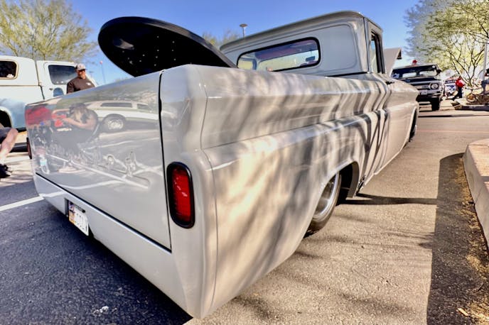 This 1960 Chevrolet C10’s second chance as a beauty queen came as one of the last projects of Second Chance Customs (SCC), formerly of Las Vegas. In the revamp process, the OG long bed was converted to a short bed using OE bed sides. The rest of the bed, including the tailgate with the ’50s Chevy script, was hand-fabbed by SCC.