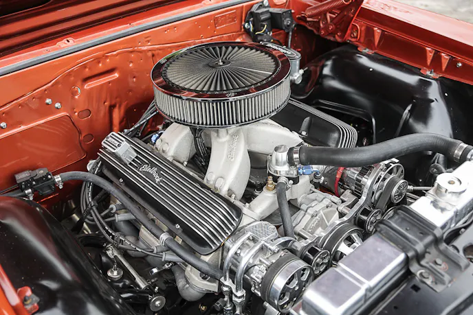 The body was in pretty good shape for being an East Coast car. When it was stripped and straightened, they tubbed the rear wheel wells and installed a roll bar for safety. Other than that, Sal kept the body fairly stock-looking. When all was said and done, the wild shade of Cry Baby Orange was touched up to perfection.