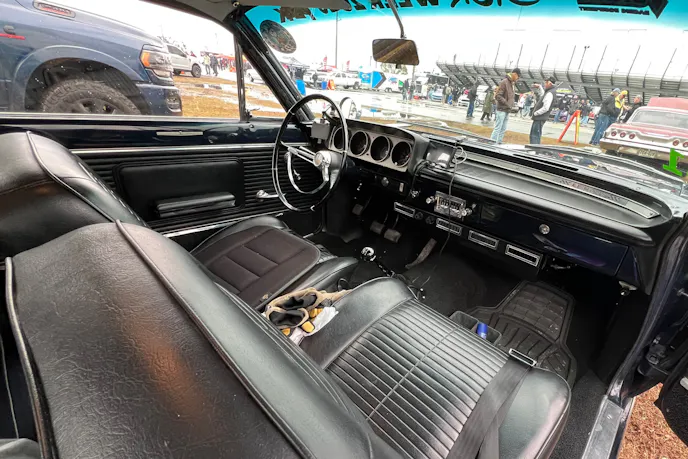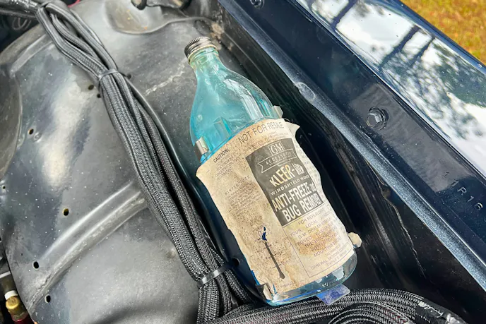 The car started life in Starlight Black and somewhere along the line the color was changed to Midnight Blue. Inside is an original-style black bucket seat interior. The biggest difference (and improvement) is the addition of a modern HVAC system. It kept him warm en route to Florida and was ready to blow cold had the temperatures necessitated it.