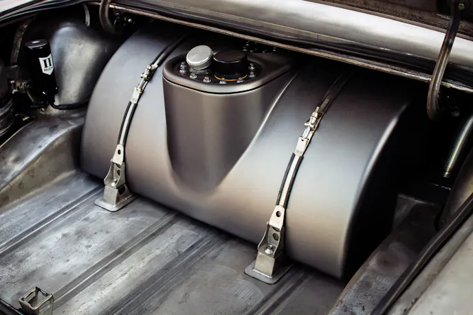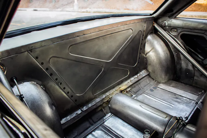 As it sits, the exterior is bare steel. Gordon had the roof chopped, the rear wheel arches moved back and widened, and the front wheel arches raised. He also had the entire chassis channeled and installed a custom floor, hand fabricated fuel tank, custom quarter panel vents, and deleted the window vents.