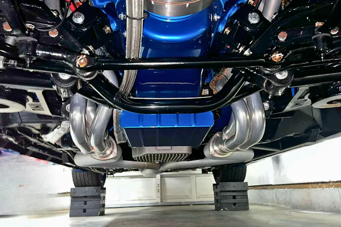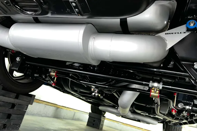A worked Turbo 400 is shifted by a Hurst Quarter Stick (with a button on top for the two-step). It uses a 3500 rpm stall PTC converter and sends the ponies to a Trick Chassis 9-inch rear with 3.70:1 gears and a nodular iron center section. A Strange driveshaft and 35-spline axles are used.