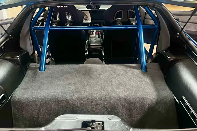 The interior has been fortified with a cage. Sparco seats keep him in place and Classic Dash gauges make sure he’s informed about the goings-on under the louvered hood.
