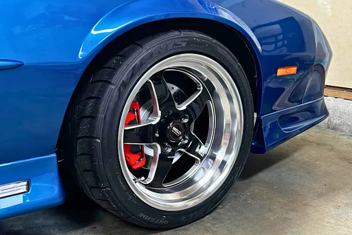 Rolling stock consists of Weld 18×9.5-inch wheels and Falken Azenis 615K Plus DOT-legal road race tires (275/35s all around).