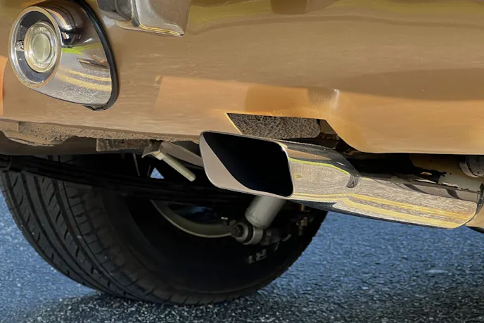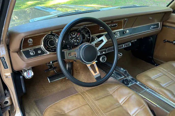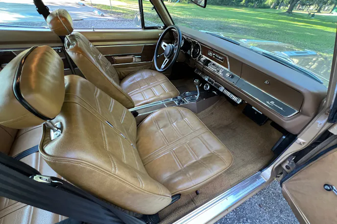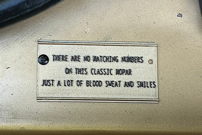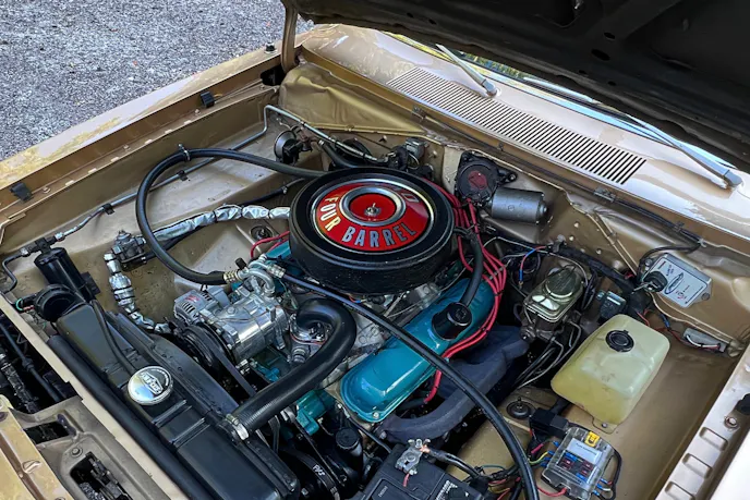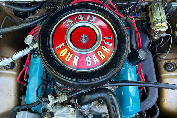 The trans is a 727 TorqueFlite with a governor from a 440. It shifts at 5,800 rpm every time. Out back is a 3.23 Sure Grip for comfy highway cruising, without the need for overdrive.