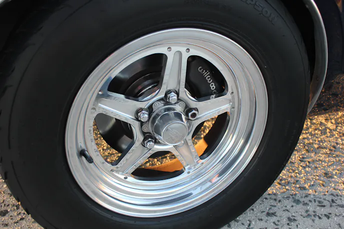 Wilwood 4-piston calipers haul the cat down from speed by clamping on 12-inch vented rotors at all four corners. The Cougar sits on 15-inch Billet Specialties wheels wrapped in Mickey Thompson rubber.