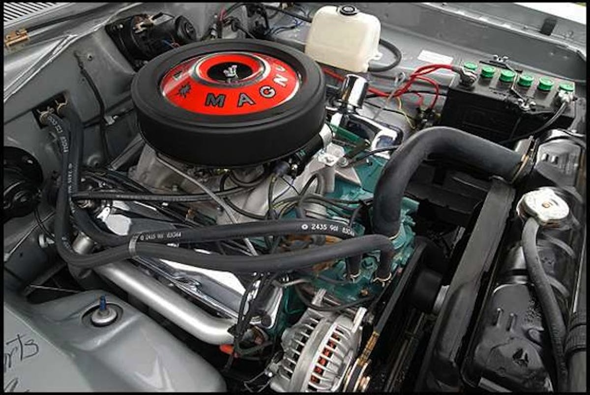 As the 383 was a tight fit, a special driver’s-side exhaust manifold, needed to clear the steering shaft, cut breathing considerably; also, power steering wasn’t available with the 383 (and, of course, air conditioning was out of the question).