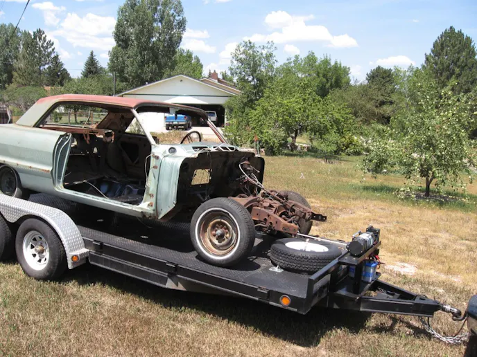 The hulk was trailered home in 1999 and parked at the construction shop where Denny’s wife worked. A donor car was needed. A 1963 Impala SS, located in Fort Collins was spotted in a Thrifty Nickel Want Ad paper. The car was available – interior in it and all the parts needed to get Denny’s Impala on the road to recovery.
