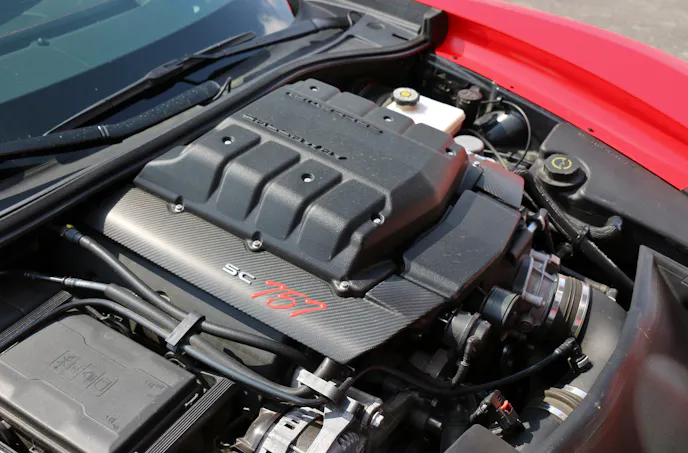 The SC627 upgrade gives the Corvette Stingray, or Grand Sport, 627 horsepower. Torque goes up to 610 lb-ft. Those respective increases of 167 and 145 (compared to the Grand Sport stock V8 figures) result in a 0-60 mph time of 3.4-seconds (down from 3.6-seconds) and an 11-second quarter-mile at 126 mph.