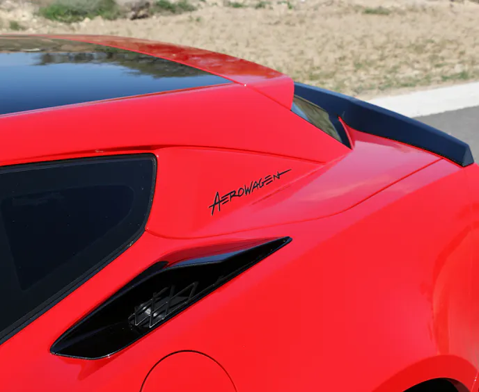 Converting a stock C7 Corvette Stingray, Grand Sport, Z06, or Callaway-enhanced C7 coupe into an AeroWagen can be a day-long process. The AeroWagen package includes the hatch assembly, tempered glass, halo bar, rear and upper spoilers, and badges. Installed and painted, it costs $14,990. The DIY kit version retails for $13,115.