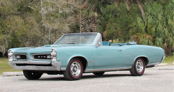 The GTO’s success was such that in 1966 Pontiac cleaved it from the LeMans and made it a standalone model in the lineup. The car received a refresh with a longer wheelbase, cutting-edge “Coke-bottle” styling and a plusher interior.
