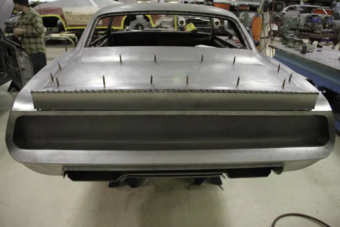 “A multi-year build at Roadster Shop’s Mundelein, Illinois headquarters, Inferno showcases metal mastery while staying true to the classic lines of a ’69 Camaro.” The release continues, “The first-gen street fighter features a hand-formed hood, firewall, dash, cowl, and rear spoiler as well as recessed grooves on the rear roof line which flow into the back glass.” The build also features a naturally aspirated LT1 engine prepped by Texas Speed that puts out an impressive 680 horsepower.