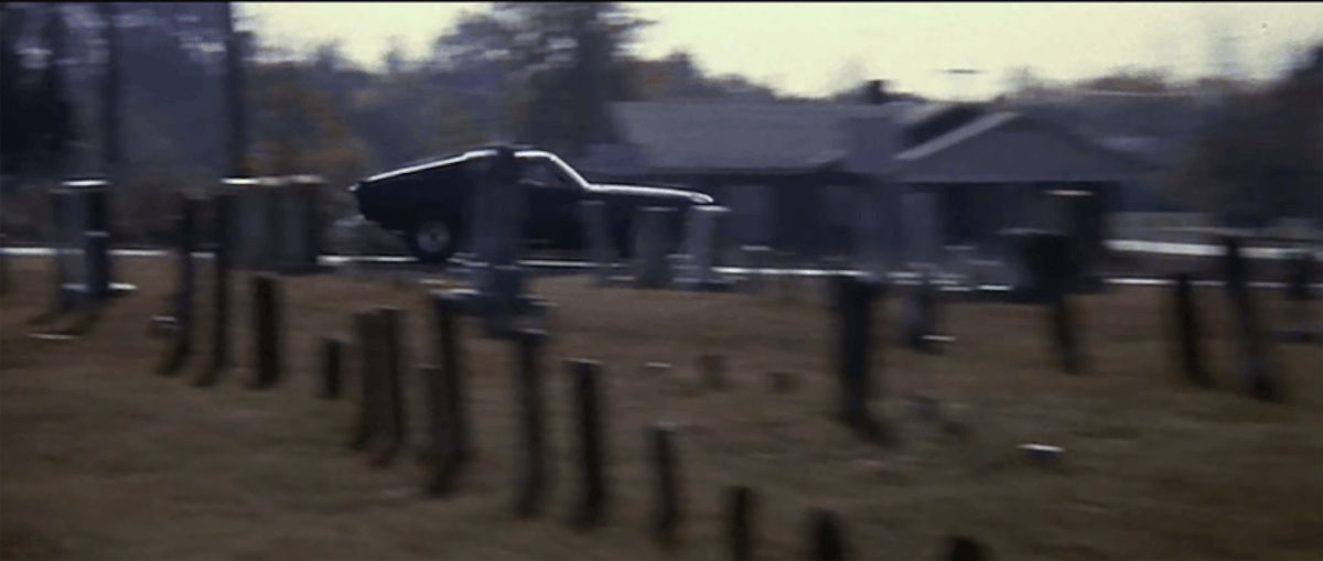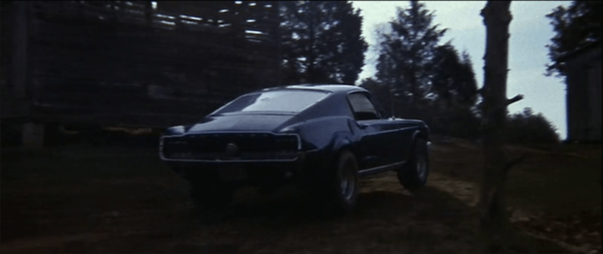 The viewer knows this is a car movie from the very first frame of the film, which depicts Junior tearing through an old Civil War graveyard in his steed, a magnificent 1968 Ford Mustang Fastback in Acapulco Blue with black interior.