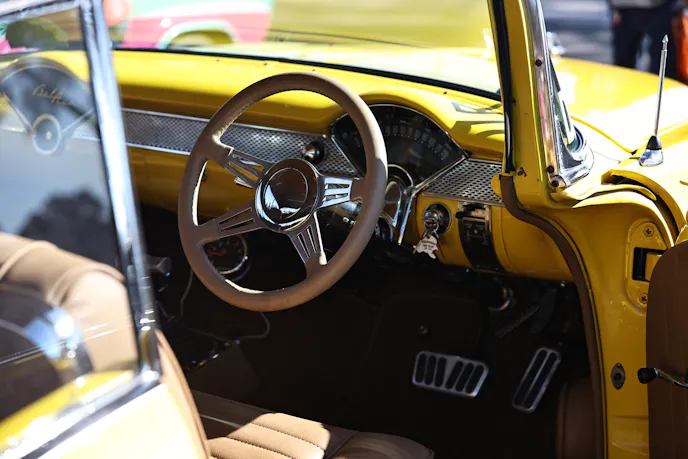 Of the many classics, we spotted a half-dozen Tri-Five Chevys, but it was Roy Galyer’s ’55 that made us do a legit double take. At first glance it appeared as if no one was driving, then we noticed Roy clutching the steering wheel on the right side of the car. Since Chevrolet never made a right-hand steer ’55 Chevy, that led us to investigate. Rolling up, we greeted Roy and it wasn’t shocking to hear a Kiwi/Aussie accent— but it was interesting to hear his story.
