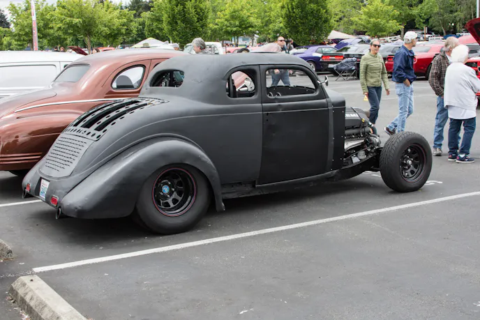 Jim bought a frame out of Maple Valley, Washington, “It was rusted but totally straight,” he explained. “I used that as a sort of template to make a new frame.” Jim hand fabricated the current frame from scratch. He also welded on a new roof and chopped the top by two inches. “You can’t just order parts that you need for it.” Jim detailed that this is not like buying parts for a tri-five Chevy. “If you need it, you have to make it. Go online and look for parts for a ’35 Plymouth and you’ll find a gas cap, that’s it.”