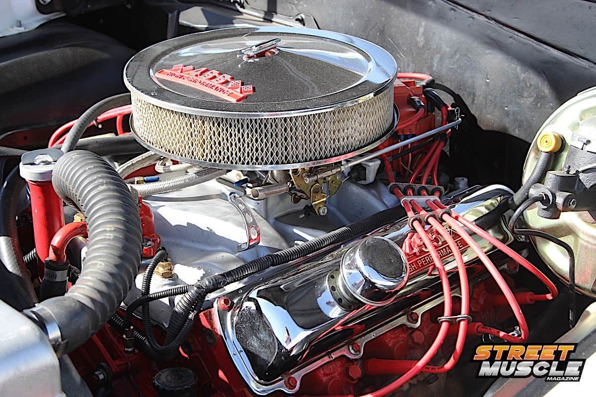 Dan has dropped the front a couple inches with new springs, and has factory sway bars front and rear, with rear air shocks – a staple of nearly any musclecar from that era. He chucked the 3.08 in favor of an Olds 10-bolt rearend with 3.26 gearing.