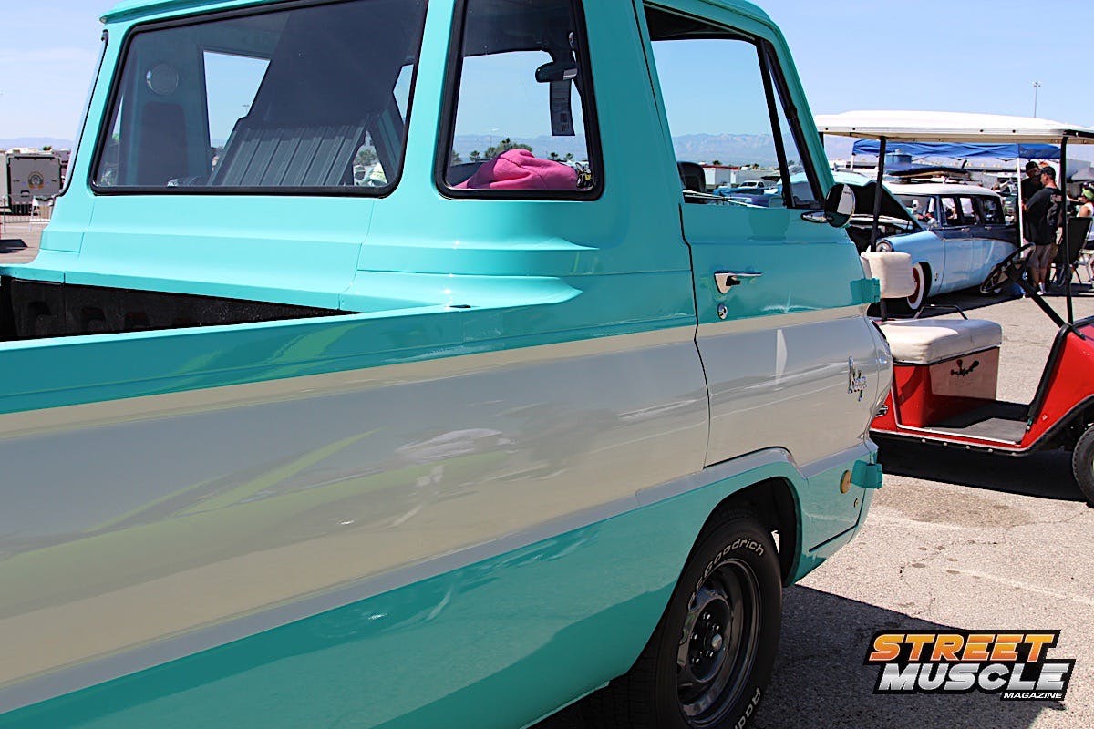 We don’t get to see these long forgotten cab-over pickups very often, and when we came across Gary’s turquoise and white A100 parked at a show in Vegas, we had to add it to our Street Feature series so others can see it. We would love to see what you are driving too, so drop us a line and your car or truck could end up as part of our Street Feature series!