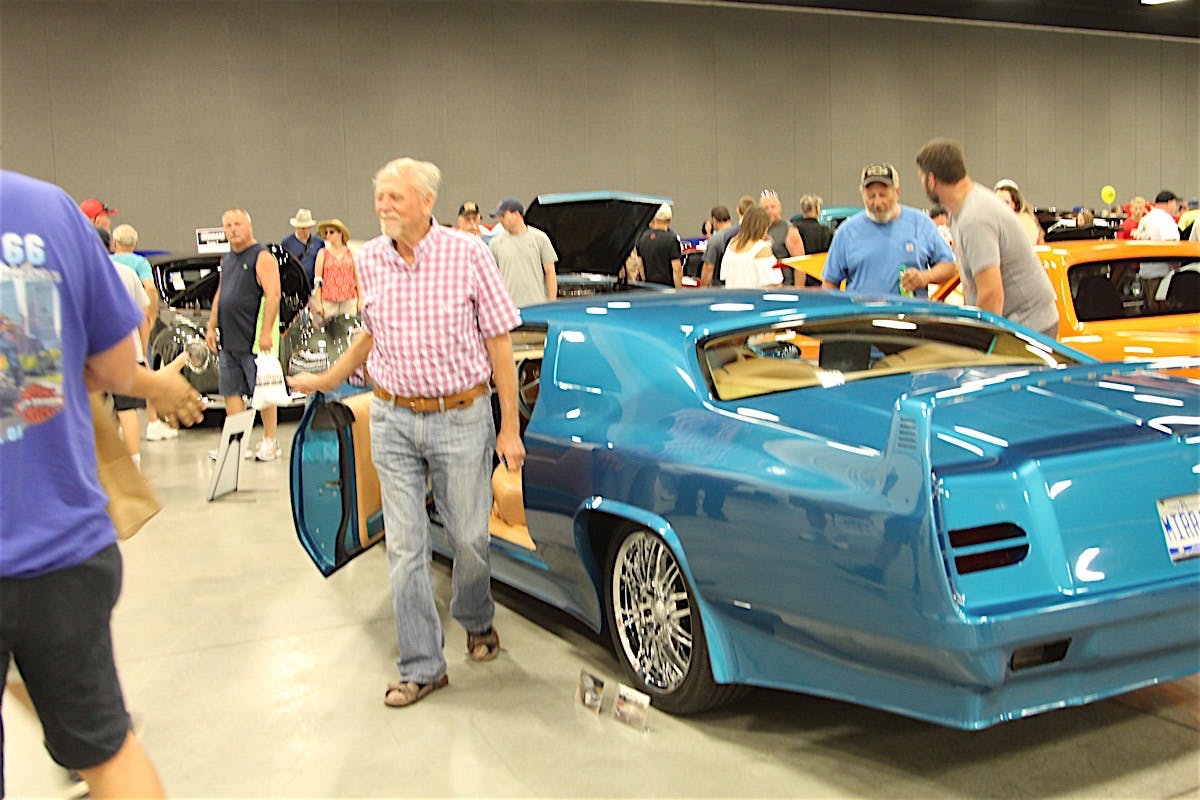 Cindy and Jim Bursma took turns getting in and out of the vehicle to demonstrate the different features of the build at the Goodguys' PPG Nationals.