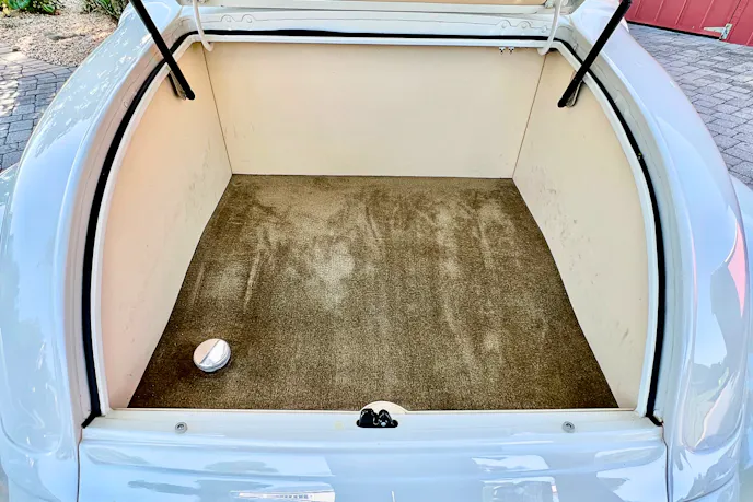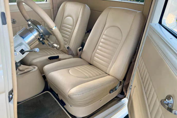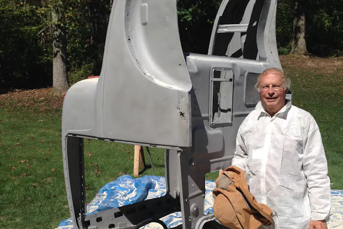 George and Ed did all the bodywork and paint. This was no walk in the park, as the body was in very poor condition. For a color, George chose Cool Vanilla, a factory hue from PPG that was offered from 2010-2020.