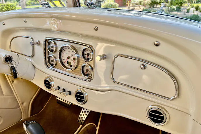 There’s no high-dollar chassis under this street rod. It is the original frame from ’33, though it has been improved quite a bit. Britz was a renowned street rod builder and George said he was the first person to adapt a Mustang II front suspension to a Model A Ford in the mid-’70s.