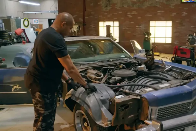 So, what’s their test subject? Well, it’s a 1973 Monte Carlo, a “beautifully ugly” machine with plenty of engine bay space for their ambitious modifications.