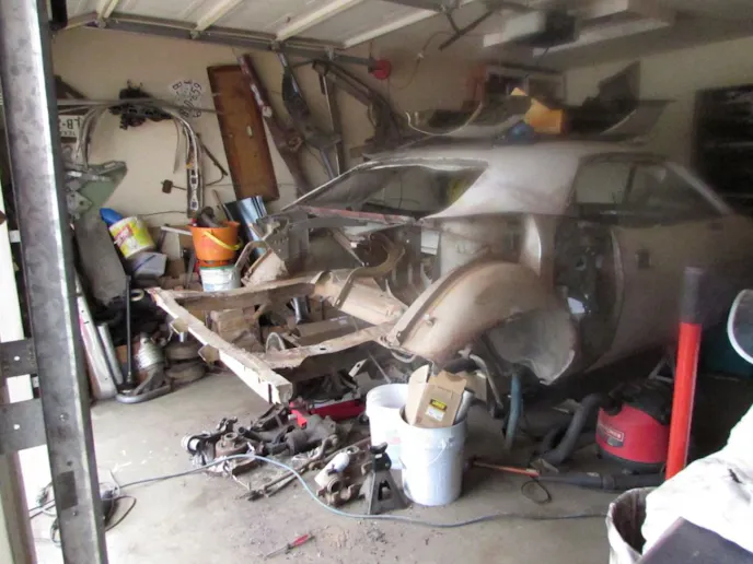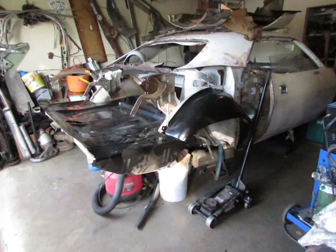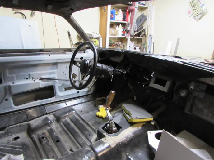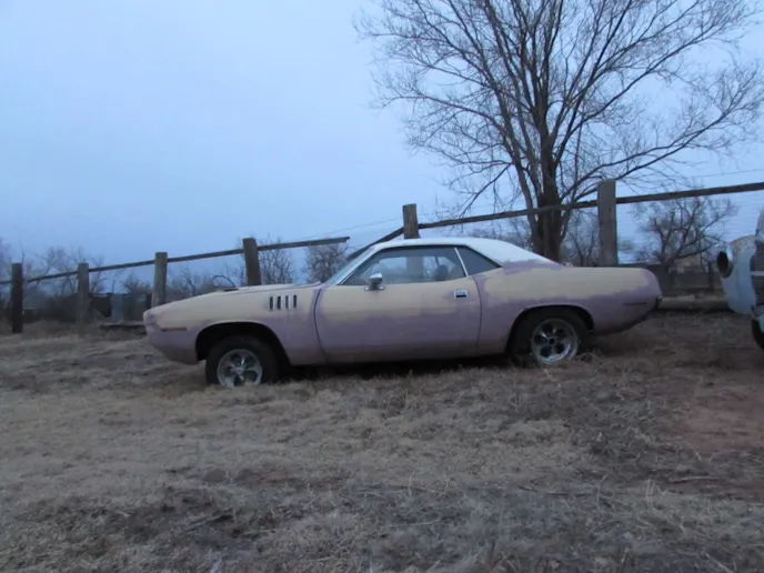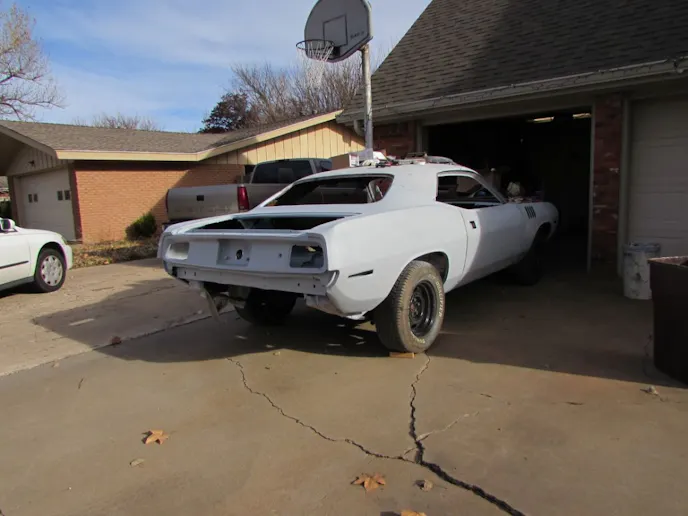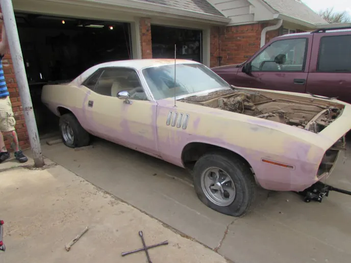 He started on the Barracuda about two years ago. It was originally a 318ci base model, with an automatic transmission and A/C. The ‘Cuda was listed as a “GT2,” Tunisian Tan (only 1-2 percent of Barracudas and Challengers were GT2), and is a “VO2,” a two-tone car. This one had a white top. As rare as this is, Rod doesn’t like the color combination and plans on painting it gloss black.