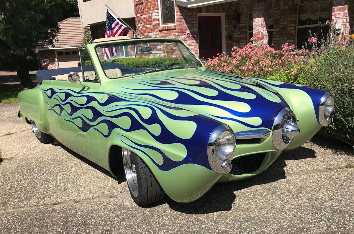 He says, “We had the car painted at Artistic Collision Center in Rancho Cordova, California. Shop owner Steve Welsh and I mixed the paint using House of Kolor gamma gold, blushing red pearl, and a dash of apple red. Steve was one of our very best friends but sadly, passed away the next year and took the exact formula with him. We remain very close to Steve’s son, Bryan who now runs the business. It would require some experimentation, but I’m sure Bryan and I can come up with a color match if we ever need a repair.