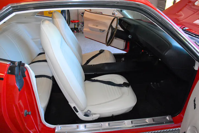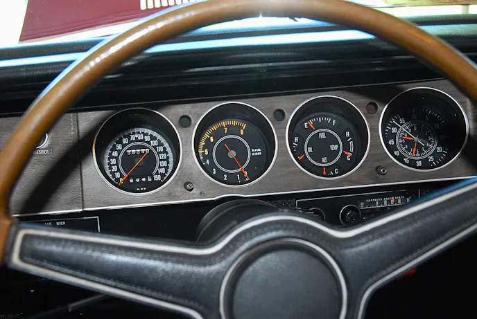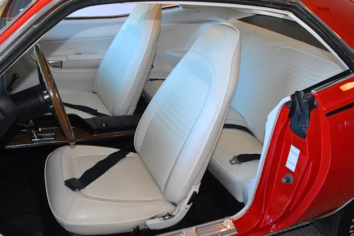 Cosmetically speaking, this particular ’70 Hemicuda was adorned in monochromatic Code FE5 Rallye Red paint with semi gloss black V6X “Hemi” Sport Stripes. Wheels were the Motor Wheel-produced “TX9” Rally’s wrapped in code U84 F60-15 Goodyear Polyglas GT tires. Inside, the ‘Cuda features a standard Code XW white vinyl high back bucket seat interior with black carpeting, rally gauges and AM radio.