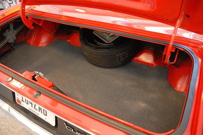 The trunk area on this particular ‘Cuda isn’t any different from other 70 ‘Cuda’s we’ve photographed in the past, (inflatable space saver spare, jack and rubber floor mat,) but it does play an important role in this particular tale.