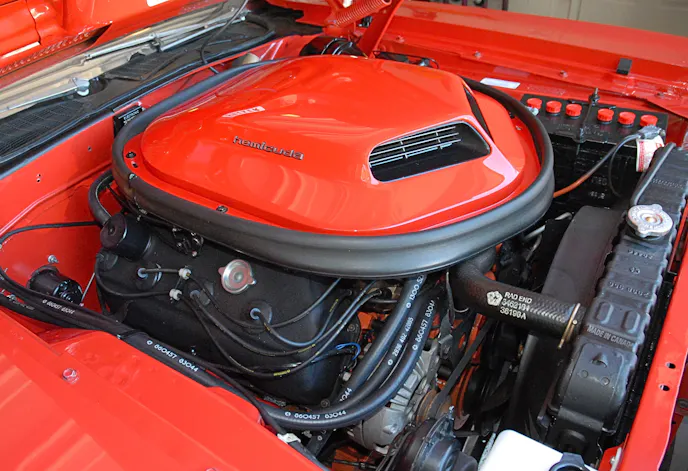 This was the year the Street Hemi got a hydraulic version of its previous camshaft. The Elephant motor was truly a detuned race engine and many found its combination of twin carbs, dual-point distributor and solid lifters too much maintenance for a daily driver. Horsepower remained the same and it proved that in period road tests: Hot Rod went 13.39 at 108; Motor Trend 13.7 at 101.2, and High Performance Cars 13.45 at 105.