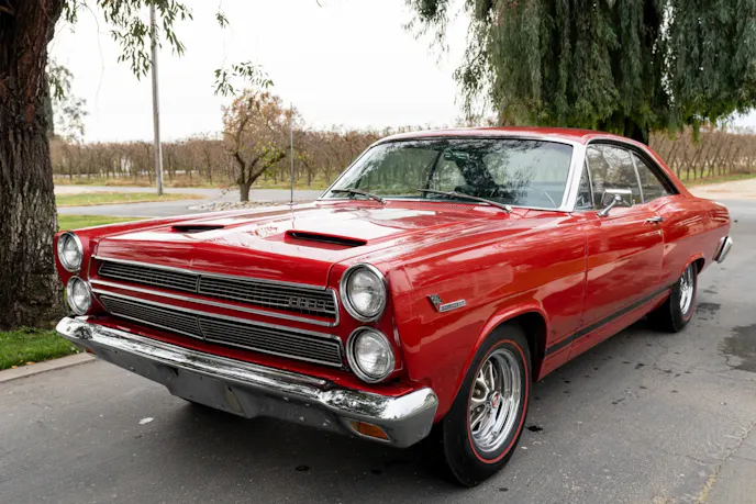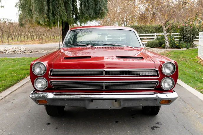 The 390 Y code was the 390 cubic-inch engine with a two-barrel carburetor producing 265 horsepower. The 390 H code had a four-barrel carburetor and cranked out 275 horsepower. The $452 GT package packed a powerful punch with an S code 390-335 horsepower V-8, dual exhaust, engine dress-up chrome, fiberglass hood with dummy scoops, handling package, front disc brakes, and GT livery. A three-speed manual tranny came standard, with a four-speed or automatic available as options. In 1966, a Cyclone GT paced the Indianapolis 500, yet no clones were ever offered to the public.