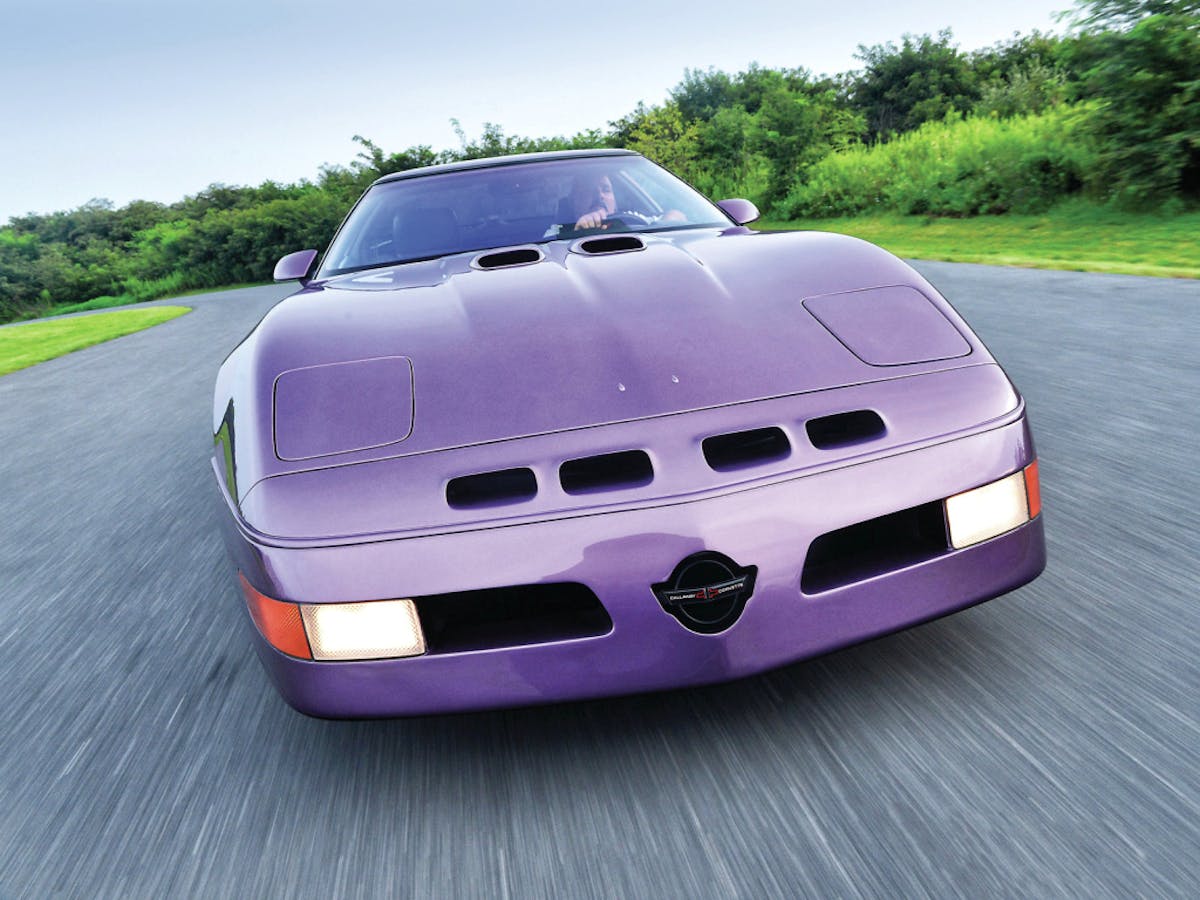 Perhaps the most crucial part of the Sledgehammer’s unreal velocity is its unique aerodynamic bodywork. Formed by Canadian designer Paul Deutschman, the aero body kit includes specific front and rear fascias, hood, and rockers. Everything was slotted and vented to reduce drag, limit lift, and increase cooling airflow. Even the surround of the snout-mounted Corvette emblem allows air to flow into the engine bay. This was the aero package that would become optional on the B2K cars.