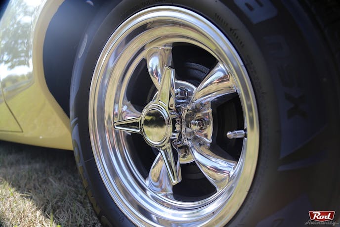Power meets the pavement with a 10-bolt rear end with stock springs, which were cut to lower the rearend. A set of American Racing Torq Thrust II wheels, complete with knock offs, are wrapped with sticky Kumho tires.