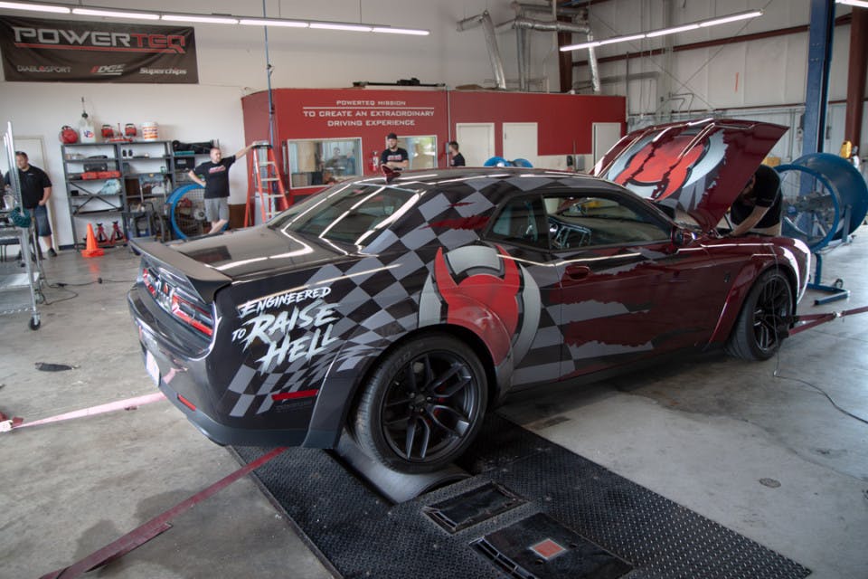The crew at Diablosport even took it a step further by challenging themselves to make more power while still maintaining factory emissions. Now, they’re no strangers to optimizing tunes for drivability and performance, so it comes as no surprise they took on the challenge. With a goal in mind and the knowledge that supercharged Gen-III Hemi motors paired with eight-speed automatic transmissions leave tons of power on the table, the mad scientists got to work on the tuning portion.