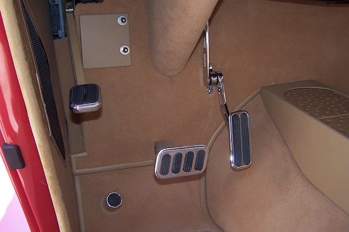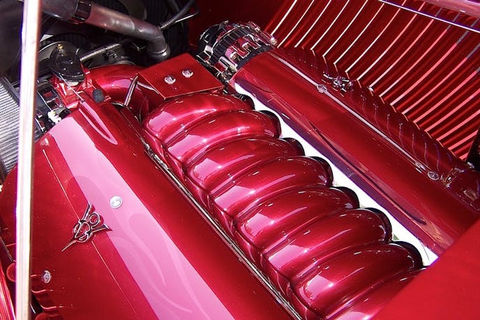 Beginning with a custom 112-inch frame from Schroeder Speed & Custom, a stainless steel independent front and parallel leaf rear suspension was added, along with a front stainless steel sway bar, custom motor mounts and a tubular crossmember. Front springs, shocks, spindles, and rack & pinion steering all came from Heidt’s, actuated by a custom-length Flaming River steering column.